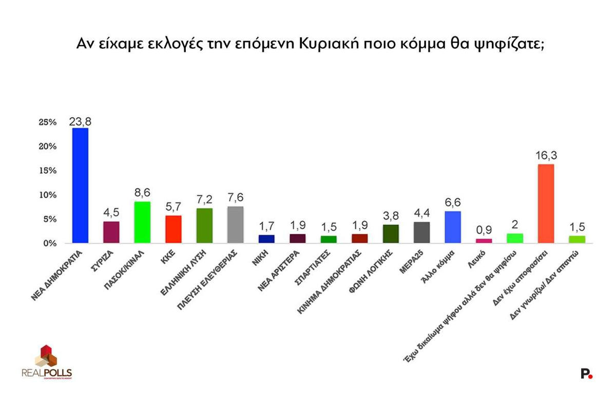 Τα ευρήματα της έρευνας της RealPolls για το Protagon, της δεύτερης της νέας κοινοβουλευτικής χρονιάς –διεξήχθη το τετραήμερο 17-20 Οκτωβρίου, σε δείγμα 1.724 ατόμων.
